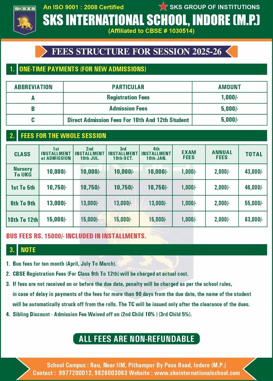 Nursery To U.k.G 1000/- 15000/- 10000/- 26000/-